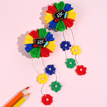 Cن 2 Grosgrain الشريط الشعر القوس الحلوى زهرة دبابيس الشعر للأطفال الفتيات العودة إلى المدرسة